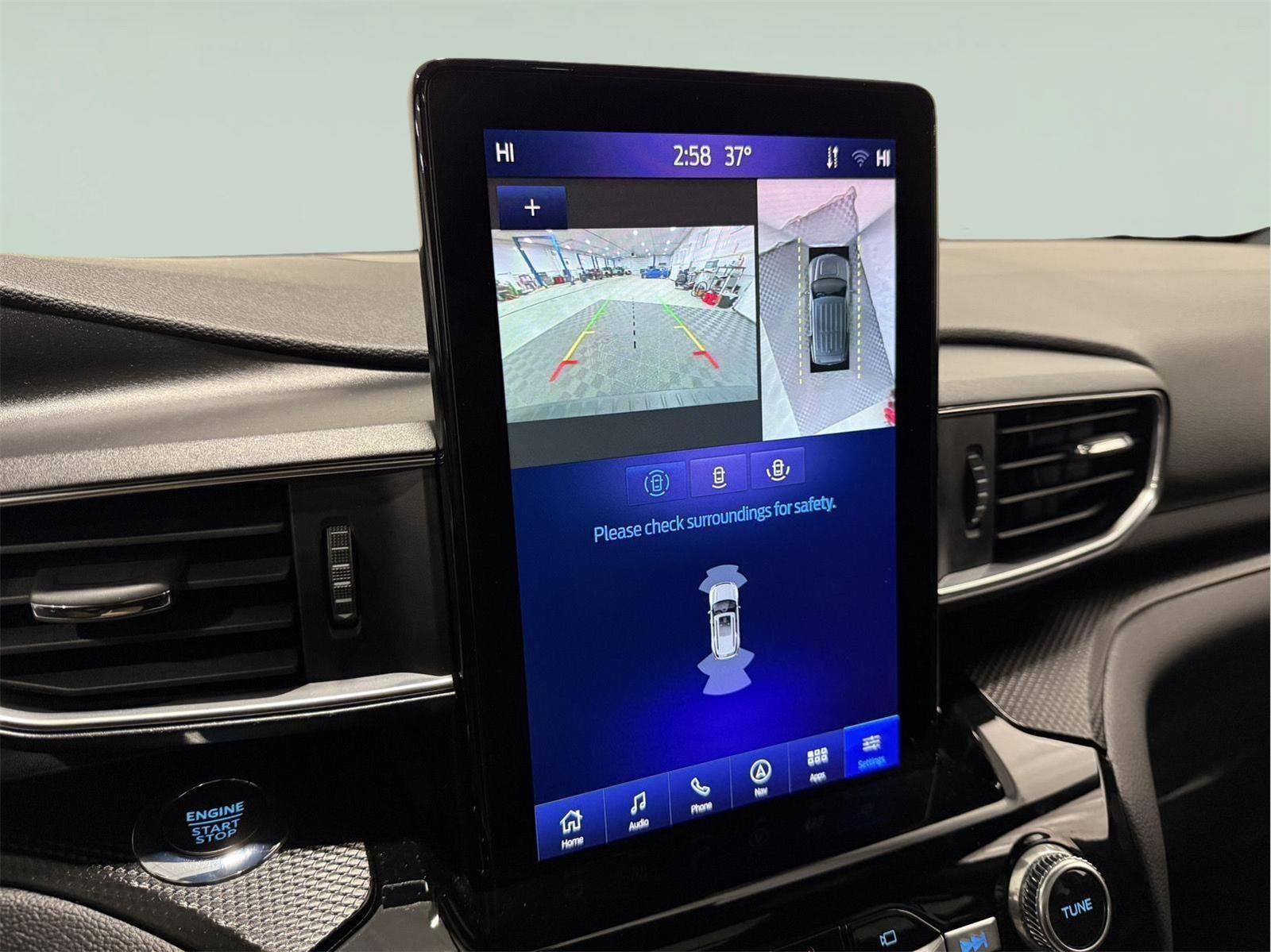 - Includes vehicle with standard equipment, 110V/150W AC power outlet in rear side of center console, 360-degree camera with split view, ambient lighting, auto-dimming rearview mirror, B&O sound system by Bang & Olufsen with 12 speakers including subwoofer, forward sensing system, hands-free foot-activated liftgate, HD radio, driver's seat memory, power adjustable and power-folding heated sideview mirrors with Autofold, LED turn signal indicators, ST projection lamps, driver's side auto-dimming, driver/passenger side memory, gloss black caps, rain-sensing wipers, reverse brake assist, front heated and ventilated seats, leather seating surfaces with micro-perforated inserts and City Silver accent stitching with ST logo, second row heated seats, second row E-Z entry, third row PowerFold, power tilt/telescoping steering column, universal garage door opener, wireless charging pad, Ford Co-Pilot360 Assist+, adaptive cruise control with stop-and-go, lane centering, evasive steering assist, voice-activated touchscreen navigation system with pinch-to-zoom capability, SiriusXM Traffic and Travel Link, speed sign recognition, 21 in. aluminum wheels with 275/45R21 all-season tires, and performance brakes with red brake calipers.