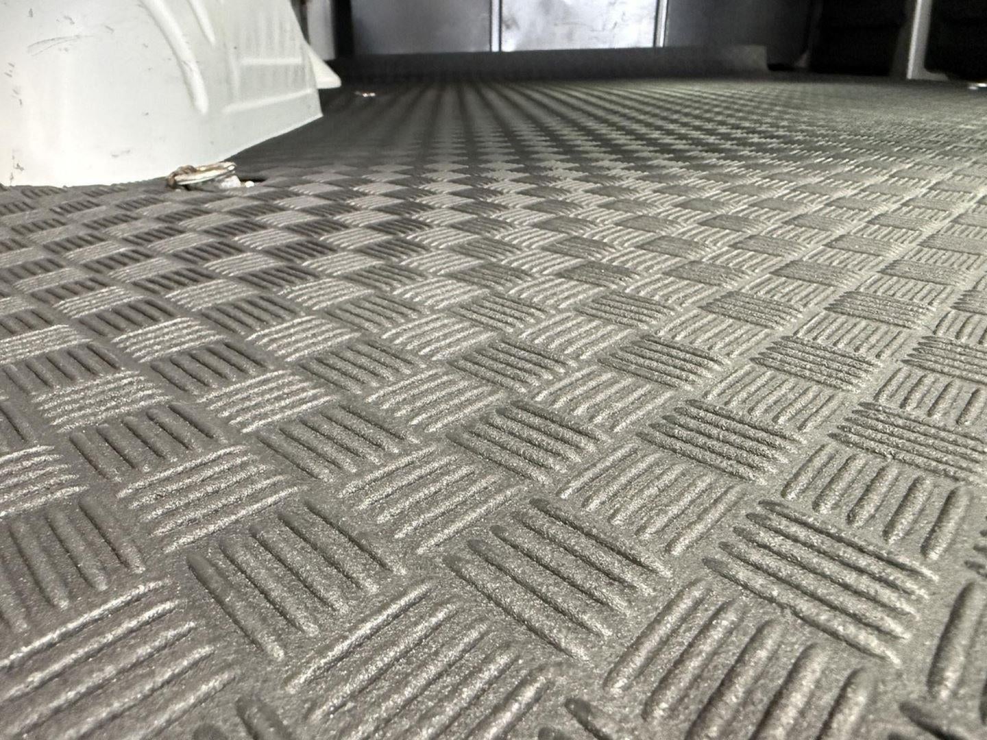 - full-length Black rubberized-vinyl (Not available with (RFM) rear floor covering delete or (PCH) Hotel Shuttle Package.)