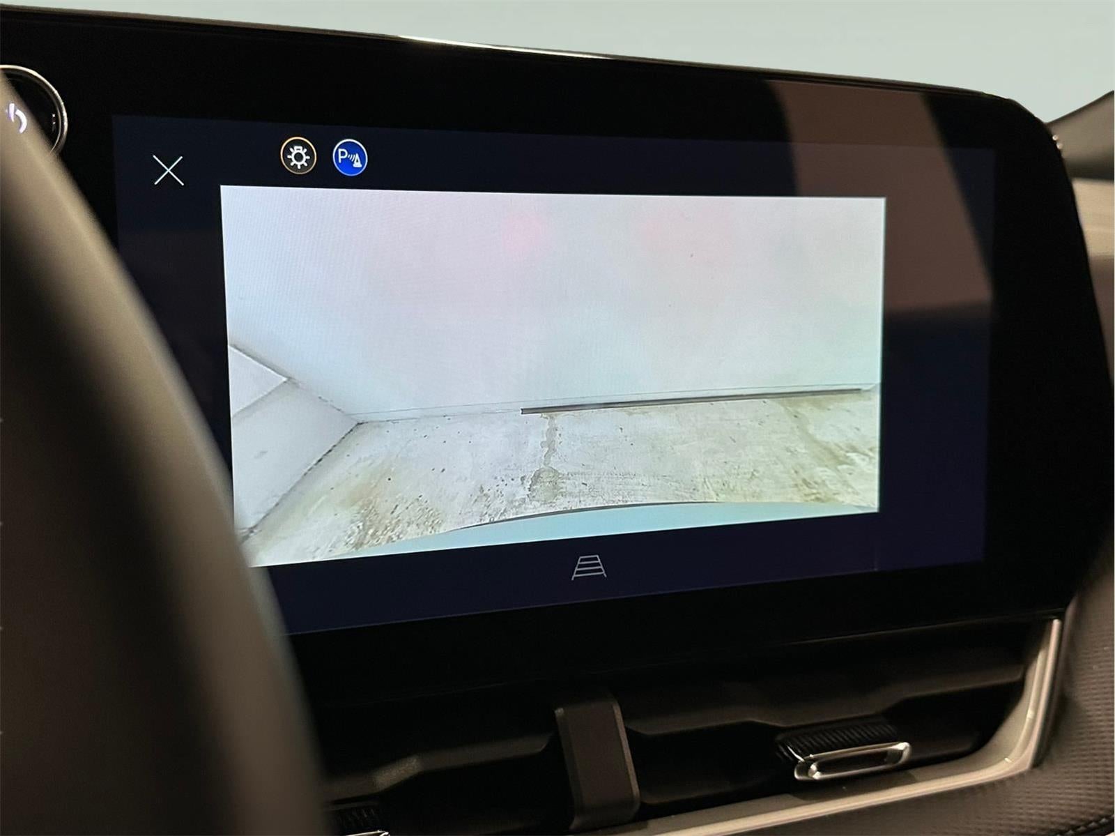 - The vehicle is equipped with a camera that displays an image of the area behind the vehicle on an interior display.